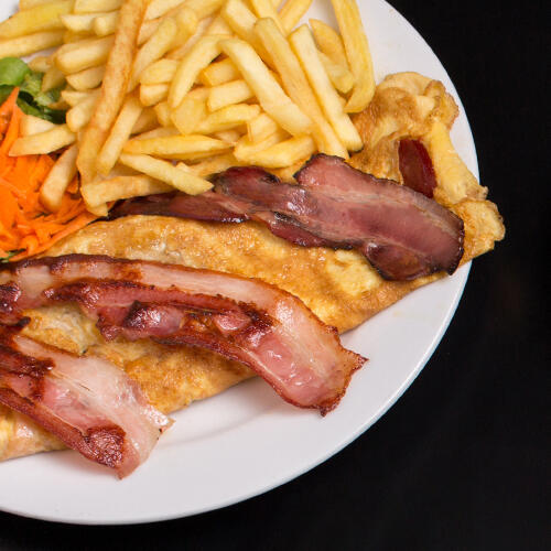 Omelete Especial com bacon, chouriço, fiambre e queijo.