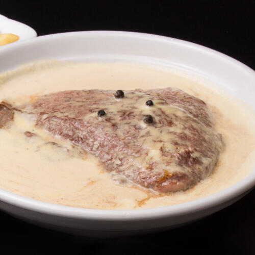 Bife grosso de Novilho com molho de pimenta e cerveja.