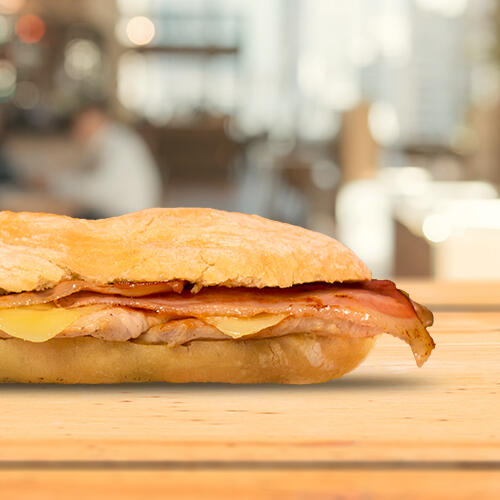 Bifana com Bacon e Queijo de Porco ou Frango.