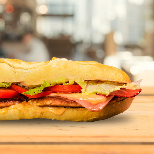 Hambúrguer com Bacon e Queijo.